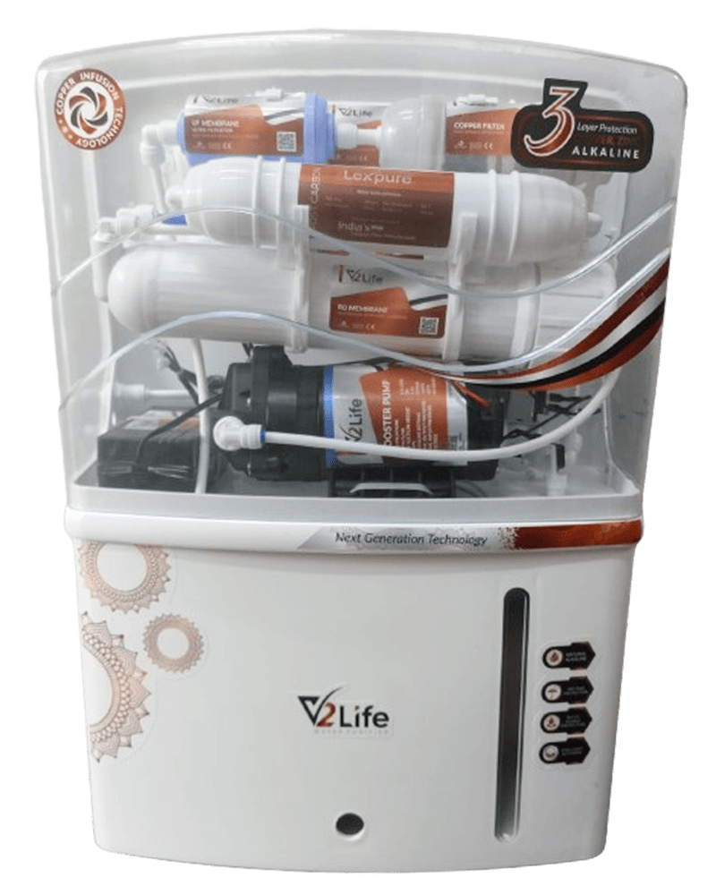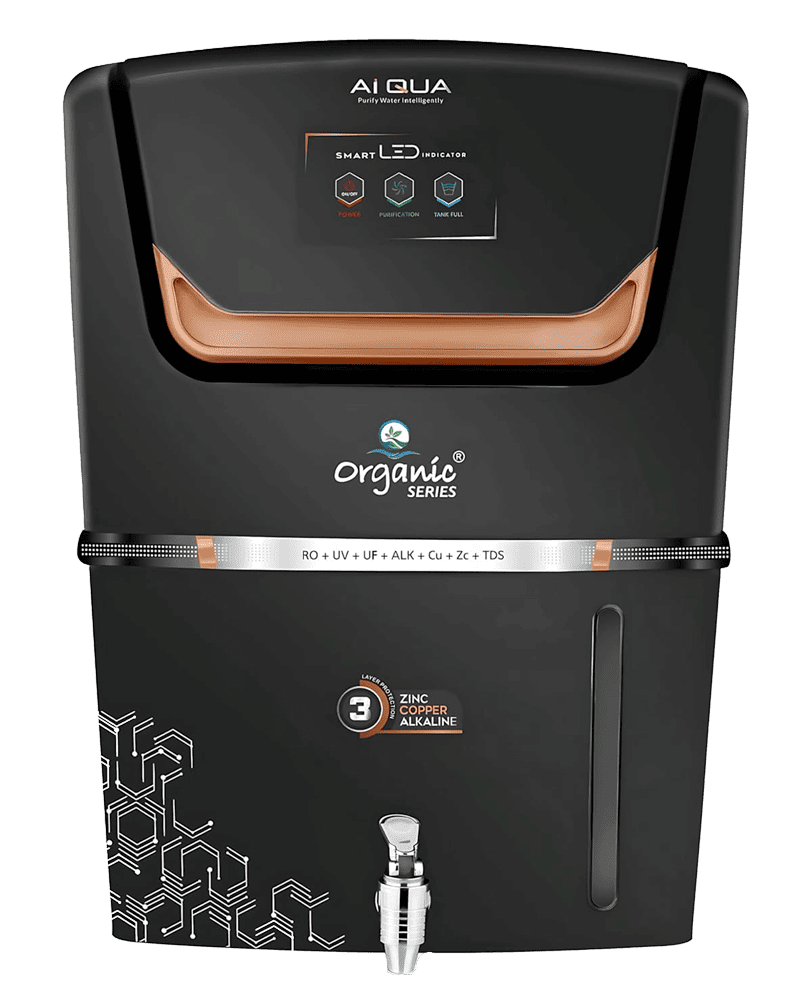 Advanced Technology: RO+ LED UV+ Patented ORC Bio Copper+ Zinc+ Alkaline+ TDS Control+ High TDS Membrane. Removes contaminants like lead, mercury, arsenic, viruses, and bacteria. UV e-boiling ensures water safety equivalent to boiling for 20 minutes. Ultra-filtration (UF) provides crystal clear, safe water.